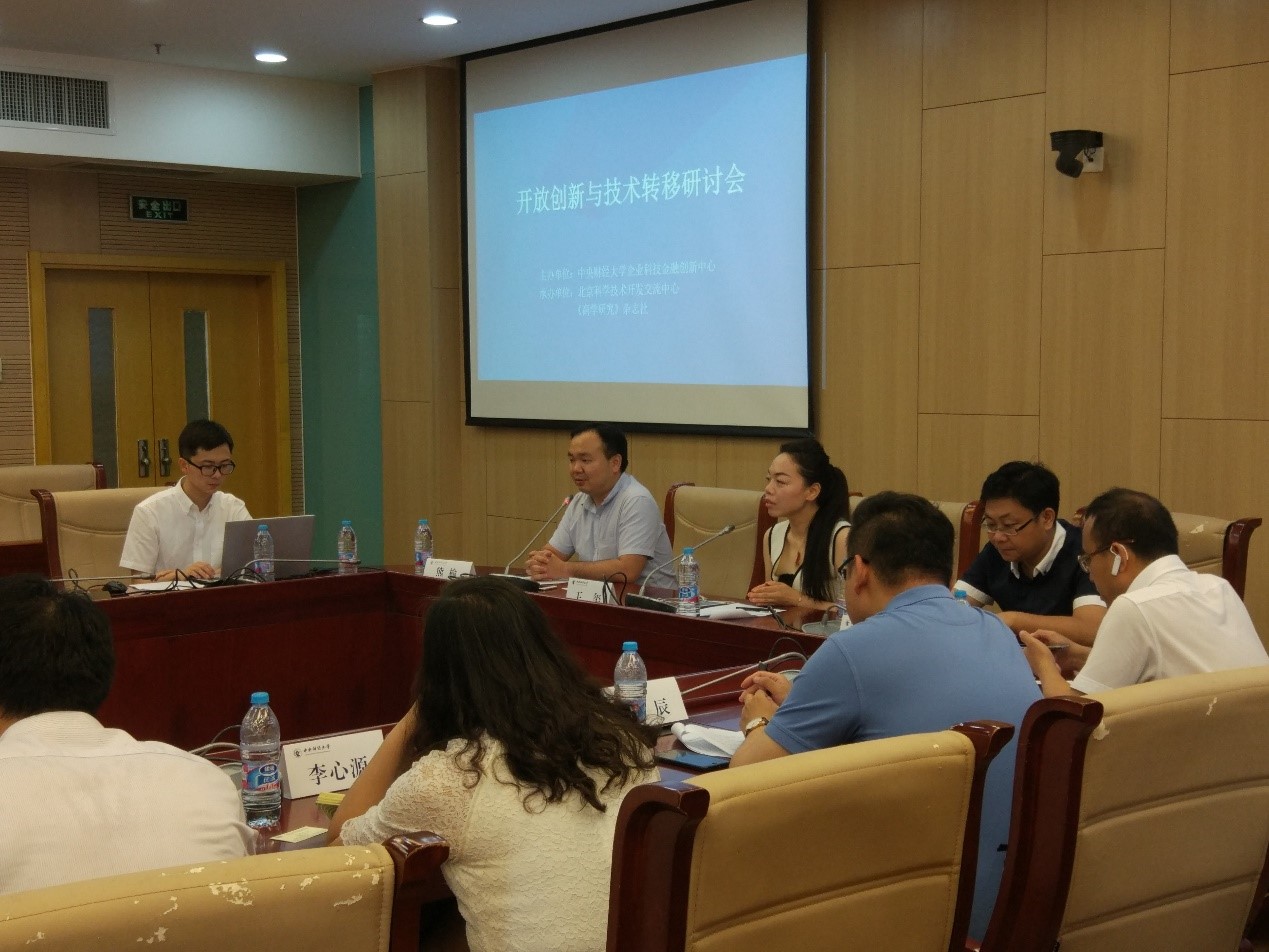 2017年7月2日,由太阳成集团tyc33455cc官网企业科技金融创新研究中心主办,北京科学技术开发交流中心、《商学研究》杂志社(原湖南商学院学报)联合承办的开放创新与技术转移研讨会在太阳成集团tyc33455cc官网学术会堂604成功举办。太阳成集团tyc33455cc官网企业科技金融创新研究中心主任王玺,英国诺森比亚大学纽卡斯尔商学院企业运营首席教授、博士生导师熊榆,北京科学技术开发交流中心副主任张春雷、主任助理陆纳新、国际合作部张辰、技术转移部刘智,中国科技部战略研究院研究员李振兴,新华社财富传媒集团李心源,必帮金信联合创始人王歌红,清控华创资产管理有限公司副总裁殷晓斌,恒丰银行战略部李威,国务院发展中心研究员熊鸿儒,太平科技保险总经理王帅,清华大学中国科技政策研究中心研究员邓兴华,及邮政集团张晓园,五矿资本控股有限公司陈政川,新华通讯社夏强,等三十余人参加了此次研讨会。