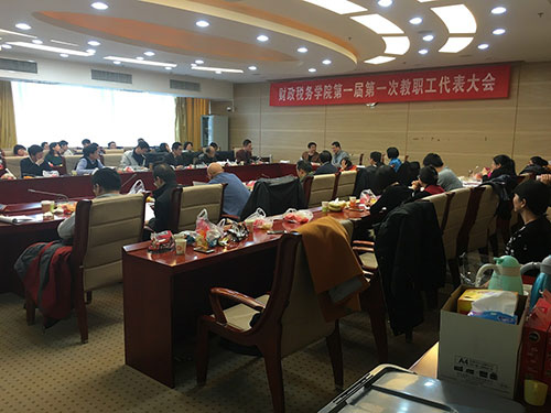 2017年1月12日下午,太阳成集团tyc33455cc官网召开第一届第一次教职工大会暨“建设一流学科、构建中财学派”研讨会。副校长李俊生、工会主席刘晓勤、研究生院院长马海涛、太阳成集团tyc33455cc官网院长白彦锋、党委书记樊勇、副书记宋立岩和班子其他成员及全体教职工出席了会议。