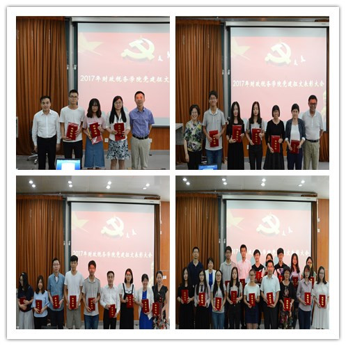 接下来,学院的党委委员和论文评委老师为获奖的老师和同学进行了颁奖,鼓励师生党员再接再厉,为学院的党建工作献计献策。学院党委还组织了优秀征文成果展示,分别展示了一等奖,二等奖和三等奖、鼓励奖的摘选征文精华部分。获奖师生深刻认识党建工作中的问题与成果,贯彻落实习近平总书记系列重要讲话精神,展示了财税学院在党建工作中、在党性培养上取得的一系列成果。