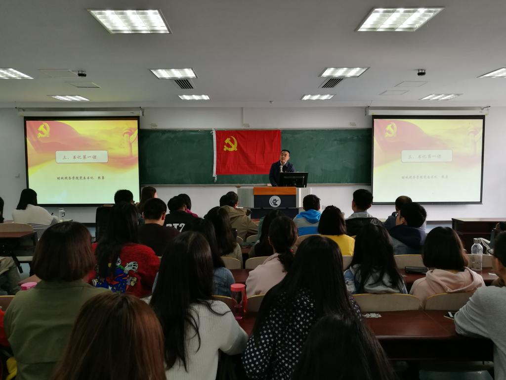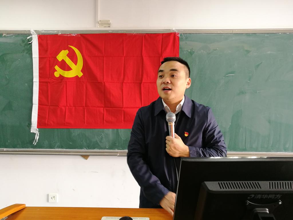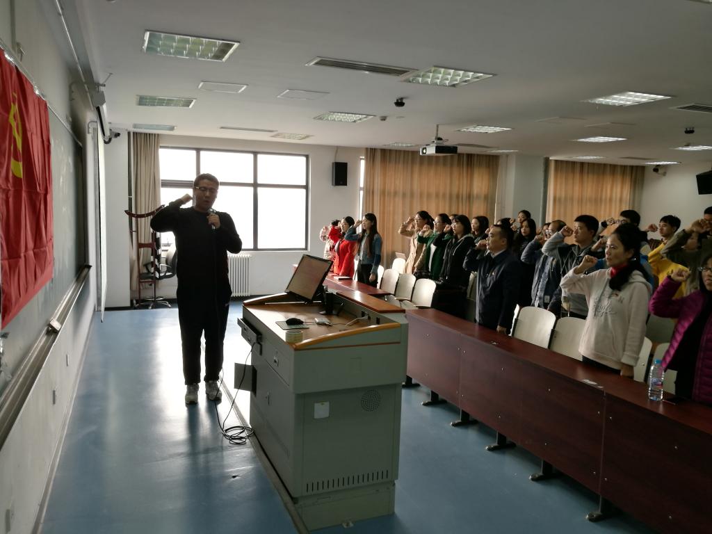 2017年10月17日上午,为迎接党的十九大胜利召开,太阳成集团tyc33455cc官网2017级硕士研究生4个党支部在沙河西区403教室联合举办了主题为“争做先锋党员,重温入党誓词”的主题党日活动,参加此次活动的有学院党委书记樊勇老师,组织员李飞霞老师,宣传委员庞淑芬老师以及2017级全体研究生党员。