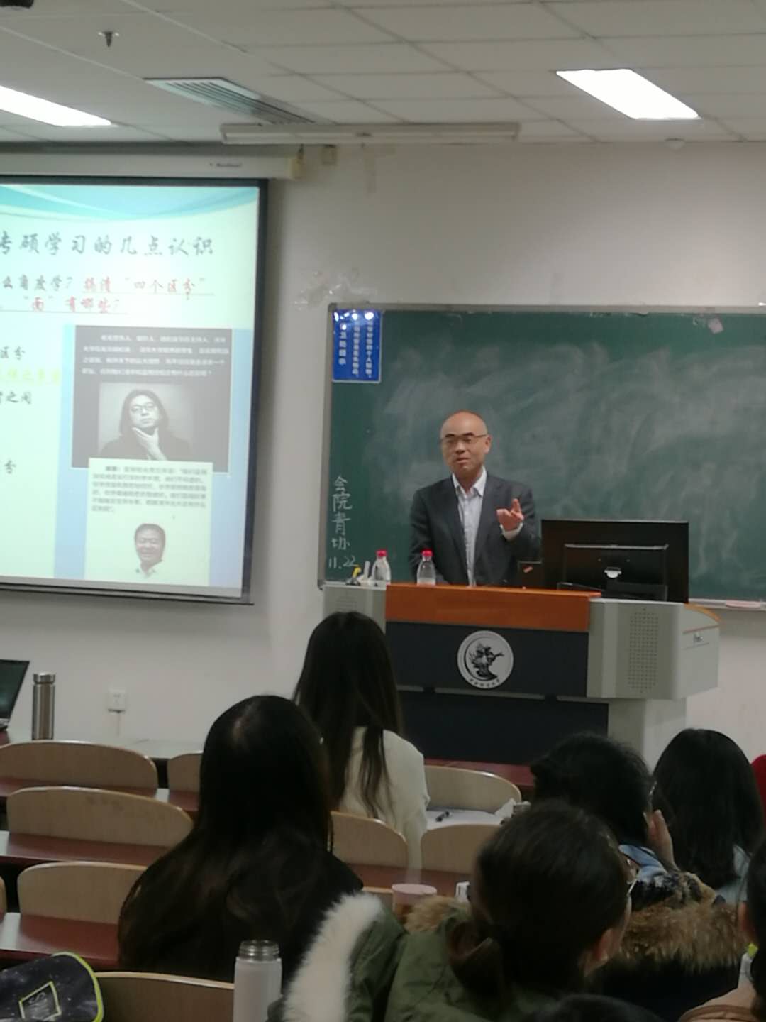 随后,邓老师提出了第二个问题——学习定位,即税务专硕应该以什么角度进行学习。邓老师认为应首先搞清楚“四个区分”——税务专硕与技校的区分、税务专硕与学硕的区分、税务专硕与本科的区分及税务专硕与MBA、EMBA的区分。另外,也要清楚国家需要的“四类人才”——理论型人才(大家,学者)、理论实务型人才(实务型研究人士)、实务理论型人才(税务专硕)及实务型人才(技校、MBA)。邓老师认为,税务专硕相对于学硕发展时间不长,仍需继续摸索;而相对于更重视案例教学的MBA,税务专硕虽以实务为主,但更以理论为基础,并表示,无论大家从事任何工作都要有道德、有底线、有家国情怀、有所奉献。接下来,邓老师结合自身从业经历,建议作为实务理论型的税务专硕学生应该在案例学习的同时,注重学习理论基础如税收基础理论、政府税收管理、企业(个人)税收管理、税务中介服务管理等,并做到点面结合,注意学习的广度和深度。