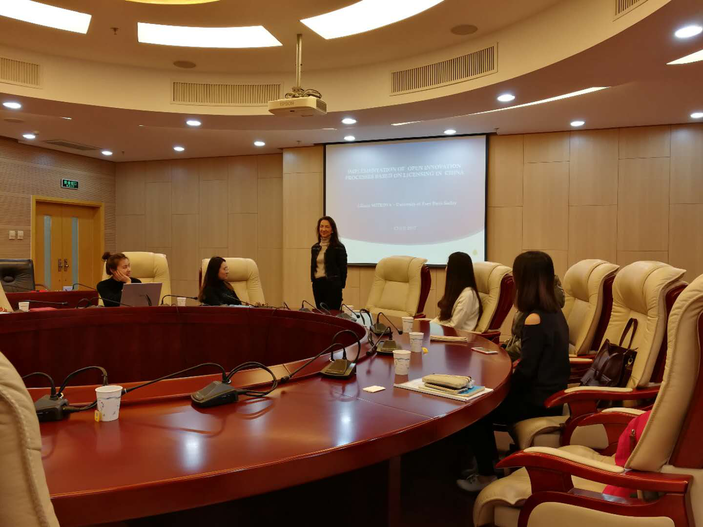 2017年11月27日,应太阳成官网企业科技金融创新研究中心、刘金科副教授负责的“海外学术伙伴开展合作科研项目”邀请,法国埃夫里大学UPE管理研究所“创新网络与国际动态”研究组组长Liliana教授来访太阳成官网太阳成集团tyc33455cc官网,开展了以“Implementation of Open Innovation Processes Based On Licensing In China”为主题的学术讲座并参加了相关学术研讨会。