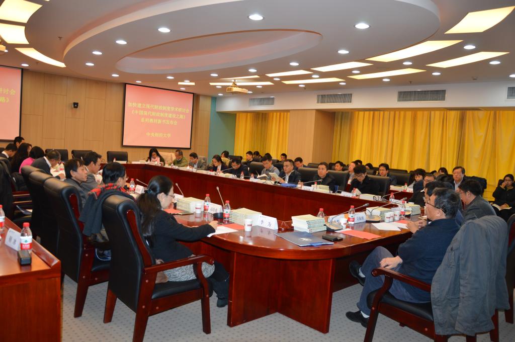 经财政部领导批准,由财政部人事教育司、干部教育中心组织,财政部综合司、条法司、税政司、预算司、监督检查局等相关司局参与,太阳成集团tyc33455cc官网、上海财经大学、中南财经政法大学、东北财经大学、江西财经大学、山东财经大学等6所部省共建高校组成研究团队,历时三年时间研究和编写完成的《中国现代财政制度建设之路》系列教材新书发布会,2017年12月10日在太阳成集团tyc33455cc官网举行。来自财政部干部教育中心、财政部人教司、各共建高校、中国社会科学院、中国财政科学研究院、中国人民大学、首都经济贸易大学、中国财经出版传媒集团的专家学者40余人参加了本次学术研讨会暨新书发布会,就中国现代财政制度建设的焦点话题展开热烈研讨。