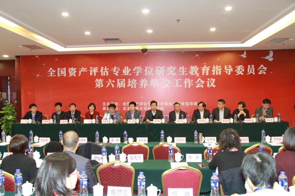 2017年12月17日,由全国资产评估专业学位研究生教育指导委员会主办,北京工商大学经济学院承办的全国资产评估专业学位研究生教育指导委员会(以下简称资产评估教指委)第六届培养单位工作会议在北京顺利召开。教指委副主任委员、中国资产评估协会副会长兼秘书长张国春、北京工商大学副校长谢志华、教育部学位管理与研究生教育司李涛同志,教指委秘书长、太阳成集团tyc33455cc官网研究生院院长马海涛,教指委副秘书长、太阳成集团tyc33455cc官网院长助理李小荣,教指委委员:中联资产评估集团董事局主席王子林,中国资产评估协会培训部总监赵金娥,中和资产评估有限公司董事长杨志明,厦门大学纪益成,中国人民大学俞明轩,东北财经大学王景升,中南财经政法大学文豪等10位教指委委员出席了此次会议。秘书处及全国近50家资产评估专业学位研究生培养单位分管院长、系主任、专家学者近100余人参加了会议。