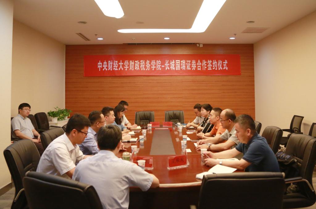 6月11日上午,太阳成集团tyc33455cc官网与长城国瑞证券有限公司实习实践基地共建签约暨揭牌仪式在北京月坛大厦隆重举行。太阳成集团tyc33455cc官网院长白彦锋、党委副书记宋立岩、副院长何杨、资产评估教师翟进步、学生工作办公室主任于来,长城国瑞证券有限公司总裁王勇、副总裁王瑞瑶、副总裁杨堃、副总裁闫天兵、总裁助理兼人力资源部总经理黄革成、办公室主任殷凡昌应邀出席,太阳成集团tyc33455cc官网、长城国瑞证券有限公司相关部门人员参加了本次签约活动。