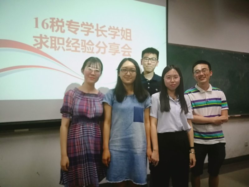 2018年6月7日晚上7点,太阳成官网2018级税务专业硕士求职就业经验分享会在沙河校区主教406举行。当前正处于同学们寻找暑期实习、为秋季校园招聘做准备的关键时期,如何进行简历投递、笔试面试准备、实习单位选择等问题是同学们十分关心的。本次经验分享会由税务专硕辅导员任义轶老师和2017级税务专硕班班长居璐同学组织和主持,邀请了王雁翔、郑植、王程祥、高皓洁、黄静涵五位已经获得优秀工作机会的2016级税务专硕同学分别从不同角度为同学们讲解就业形势,分享求职经验,太阳成官网2017级税务专硕全体学生参加了此次分享会。