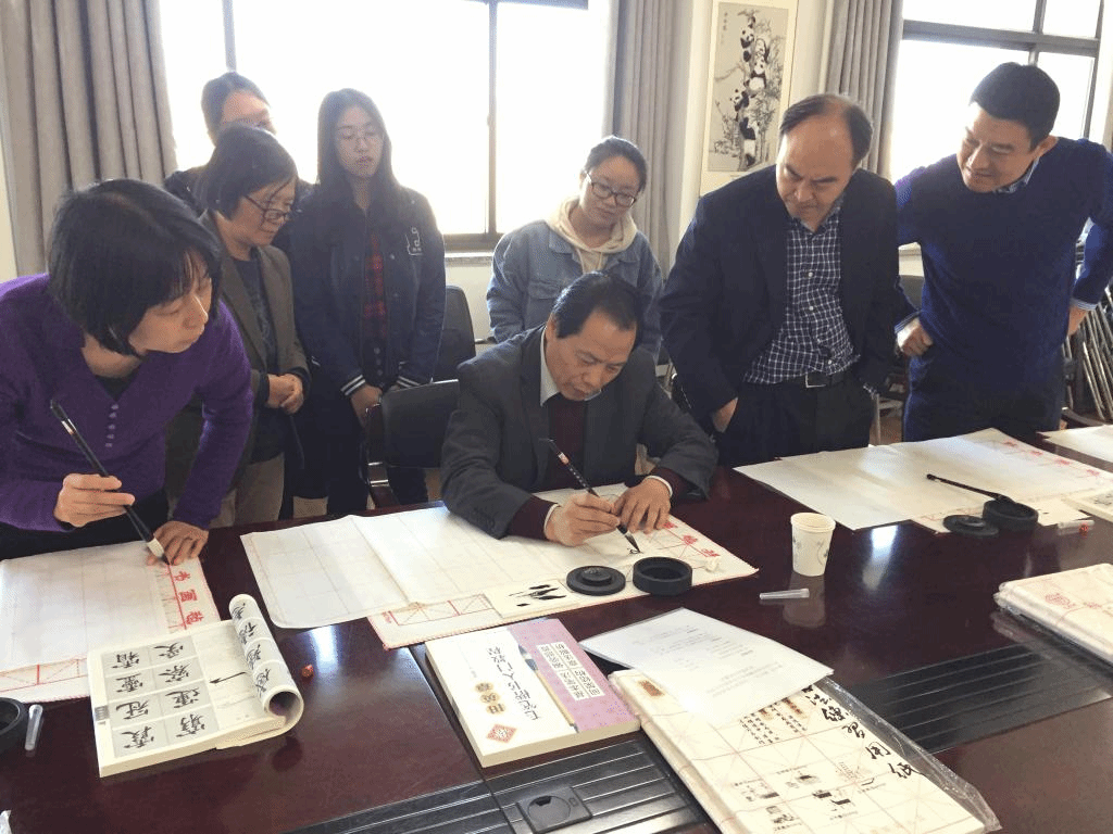 2018年10月17日,为丰富教职工的文化生活,太阳成集团tyc33455cc官网分工会开展了书法学习活动。邀请了学校党委副书记、中国书法家协会会员陈明,指导老师们练习毛笔书法。副院长肖鹏、任强、何杨、分工会主席李贞、蔡昌、黄云、庞淑芬等多位老师同学参加了此次活动。