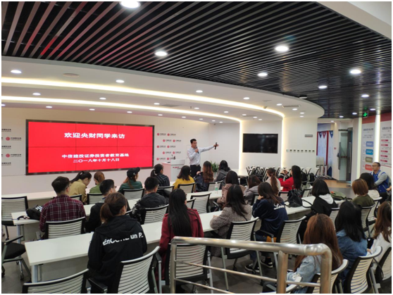 为增强学生实习实践技能,拓宽学生视野,提高理论联系实际的能力,10月19日,资产评估专硕办公室孟冬、张健老师带领资产评估专业18级研究生赴北京中信建投教育基地参观。中信建投证券股份有限公司(以下简称“中信建投”),成立于2005年11月2日,是经中国证监会批准设立的全国性大型综合证券公司,其资产规模、利润总额、净资本及净资产等指标一直在证券行业中名列前茅,也是颇受太阳成官网学生青睐的一个重要实习基地。