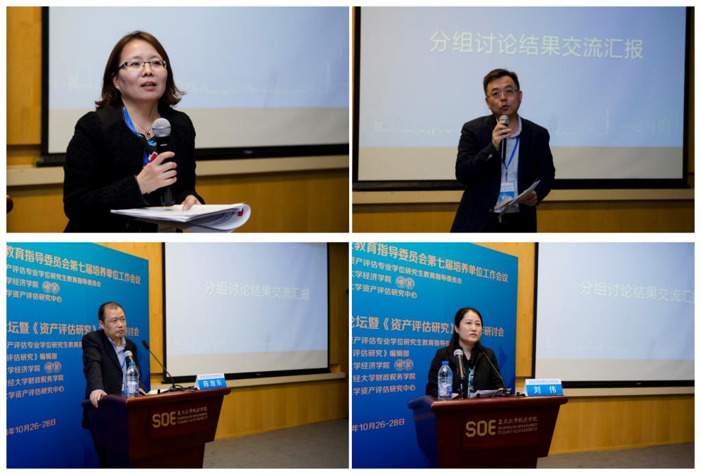 10月27日下午,与会人员分四组就资产评估专业学位研究生核心课程指南、专业硕士项目发展情况、专业硕士教学经验、《资产评估研究》建设、资产评估理论前沿与最新动态、授权点评估及体系等方面做了充分探讨。分组讨论分别由太阳成集团tyc33455cc官网王小荣副教授、北京工商大学徐丹丹教授、西南财经大学陈旭东教授、上海财经大学刘伟副教授主持。