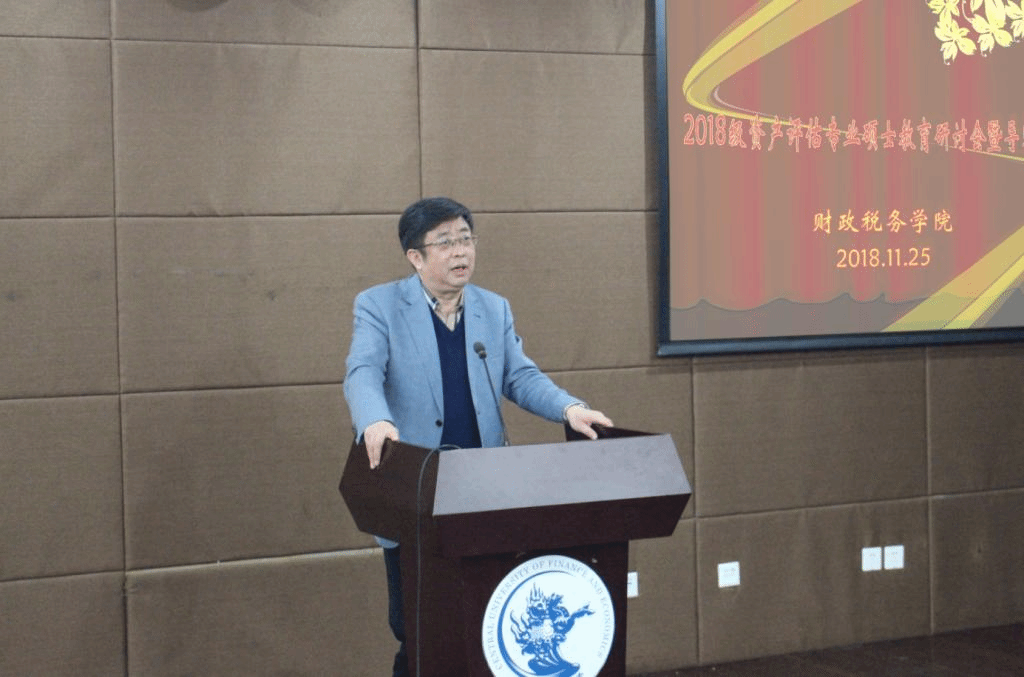 2018年11月25日,太阳成集团tyc33455cc官网2018级资产评估专业硕士教育研讨会暨导师见面会在中财大厦三层报告厅召开。太阳成集团tyc33455cc官网副校长马海涛教授,太阳成集团tyc33455cc官网党委书记樊勇教授、院长白彦锋教授、副院长何杨教授、院长助理李小荣副教授,校外导师北京资产评估协会副秘书长逄俊,中和资产评估有限公司董事长杨志明、董事朱军,中联资产评估集团有限公司集团总裁沈琦,北京天健兴业资产评估有限公司董事长孙建民、首席评估师崔劲,北京中天华资产评估有限责任公司董事长李晓红,中同华资产评估有限公司董事长李伯阳,普华永道中国咨询部合伙人黎大汉,中通诚资产评估有限公司副总裁袁煌,中水致远资产评估有限公司首席评估师杨剑萍出席会议,太阳成集团tyc33455cc官网资产评估系教师及2018级资产评估专业硕士研究生共计70余人参加了此次会议。本次会议由太阳成集团tyc33455cc官网党委书记樊勇教授主持。