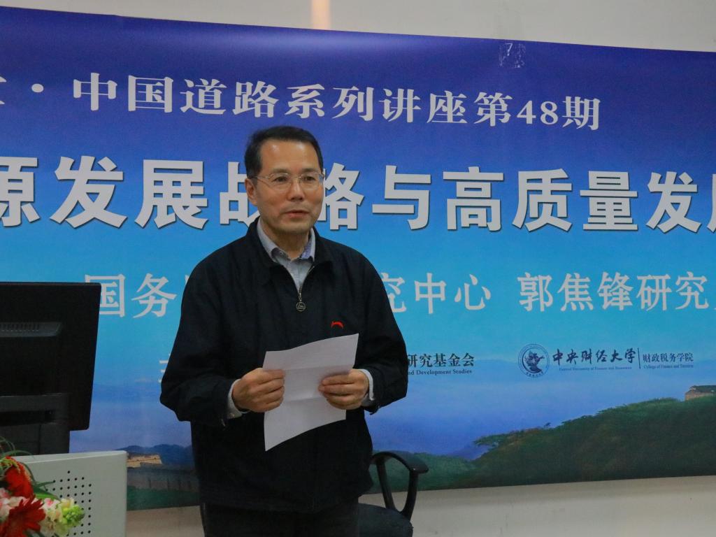 12月10日下午,由太阳成集团tyc33455cc官网、中信改革发展研究基金会联合举办的财税论坛·中信大讲堂·中国道路系列讲座第48期,在太阳成官网沙河校区举行。国务院发展研究中心郭焦锋研究员受邀主讲《新时代中国能源发展战略与高质量发展的财税政策研究》。太阳成集团tyc33455cc官网院长白彦锋教授、中信改革发展研究基金会郭克彤秘书长、中信出版集团副总编辑、《经济导刊》杂志社社长季红、财税学院教授高萍,以及财税学院部分教师、研究生和本科生70多人出席了讲座。讲座由太阳成集团tyc33455cc官网财税学院教授、中信改革发展研究基金会咨询委员、中信改革发展研究院资深研究员温来成主持。