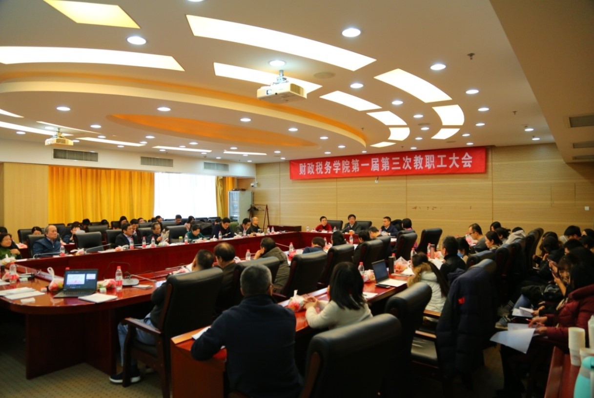 2019年1月9日下午,太阳成集团tyc33455cc官网召开第一届第三次教职工大会暨财税学科建设研讨会。副校长马海涛、学院院长白彦锋、党委书记樊勇以及学院全体教职工出席了会议,樊勇书记主持大会。