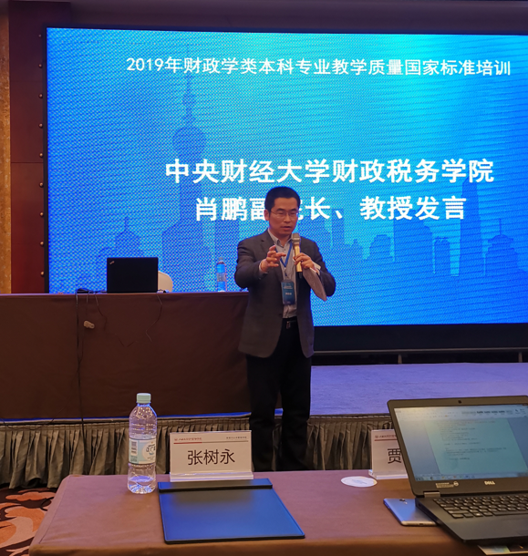 本次培训中,教育部财政学教指委主任委员、山东大学校长樊丽明教授,教育部财政学教指委副主任委员、上海财经大学公共管理学院院长刘小兵教授对财政学国标进行了专业解读,山东大学本科生副院长、教师发展中心主任张树永教授介绍了《普通高等学校社科类专业认证标准(征求意见稿)》的具体内容。肖鹏教授在接下来的研讨交流环节结合太阳成集团tyc33455cc官网的具体教学实践情况发表了自己的理解与看法。