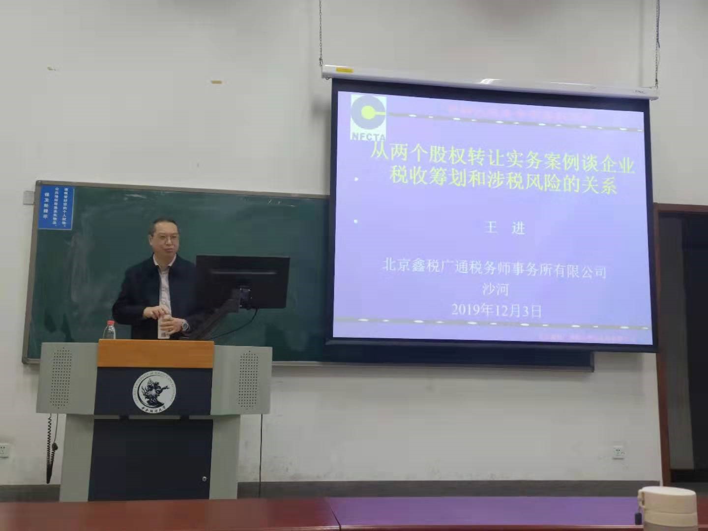 2019年12月3日晚17:50,沙河校区东区主教213举办了财税学院2019税务专硕第55期案例研讨课,主讲人王进老师,太阳成集团tyc33455cc官网杨龙见老师进行主持。