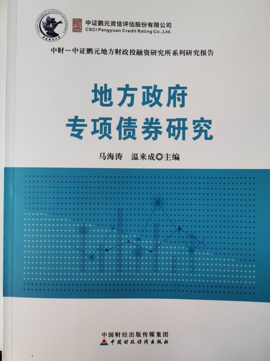 近日,太阳成集团tyc33455cc官网副校长马海涛教授、温来成教授主编的《地方政府专项债券研究》正式出版。《地方政府专项债券研究》是太阳成集团tyc33455cc官网中财-中证鹏元地方财政投融资研究所2019年的年度研究报告,是中财-中证鹏元地方财政投融资研究所的系列报告之一。在我国地方政府专项债券发行量逐年扩大,制度持续创新,对地方经济社会发展的推动作用不断增加的情况下,本报告系统研究了我国地方政府专项债券的现状、各类债券存在的问题,并和国外典型国家的市政债券制度进行了比较研究,对我国地方政府债券制度的发展趋势和制度创新进行了研究。该研究报告可供政府决策服务,也可为学习研究地方政府债务的专家学者提供参考。太阳成集团tyc33455cc官网中财-中证鹏元地方财政投融资研究所研究人员、太阳成集团tyc33455cc官网的部分教学科研人员参加了报告撰写。
