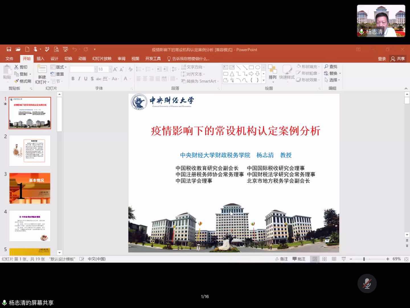 财税学院税务专业硕士项目主任杨龙见副教授主持了税务专硕的专业讲座。财税学院杨志清教授分享了“疫情影响下的常设机构认定案例分析”,案例涉及中外合作办学中国外大学是否构成国内大学的境外常设机构。杨老师由此出发对疫情期间的常设机构认定展开分析,指出疫情期间在家办公不会构成常设机构,并对各国疫情期间常设机构的税务处理规定做了详细梳理,但我国尚未出台疫情期间常设机构的相关政策。德勤税务与法律部高级经理嵇峰作了“寄语未来税务专业硕士”的分享,内容涵盖税务专硕职业方向、当前经济形势、新技术发展对职业前景的影响等方面。嵇经理还结合自身经验,对中美个税制度及税务处理进行比较,向同学们指明了未来有发展潜力的行业和地区。国家税务总局所得税司的同志就“个人所得税改革和发展趋势”进行了分享,从个人所得税的起源发展、改革历程、未来改革方向等方面进行了讲解,并对个税改革中的重点和难点问题做了深入分析,回顾了最近几年个税改革方案中蕴含的深层衡量。2019级税务专业硕士魏颖钰同学分享了自己之前的参营体验,并对保研后的生活规划、实习与科研的权衡、学习考证的必要性等方面提出建议。