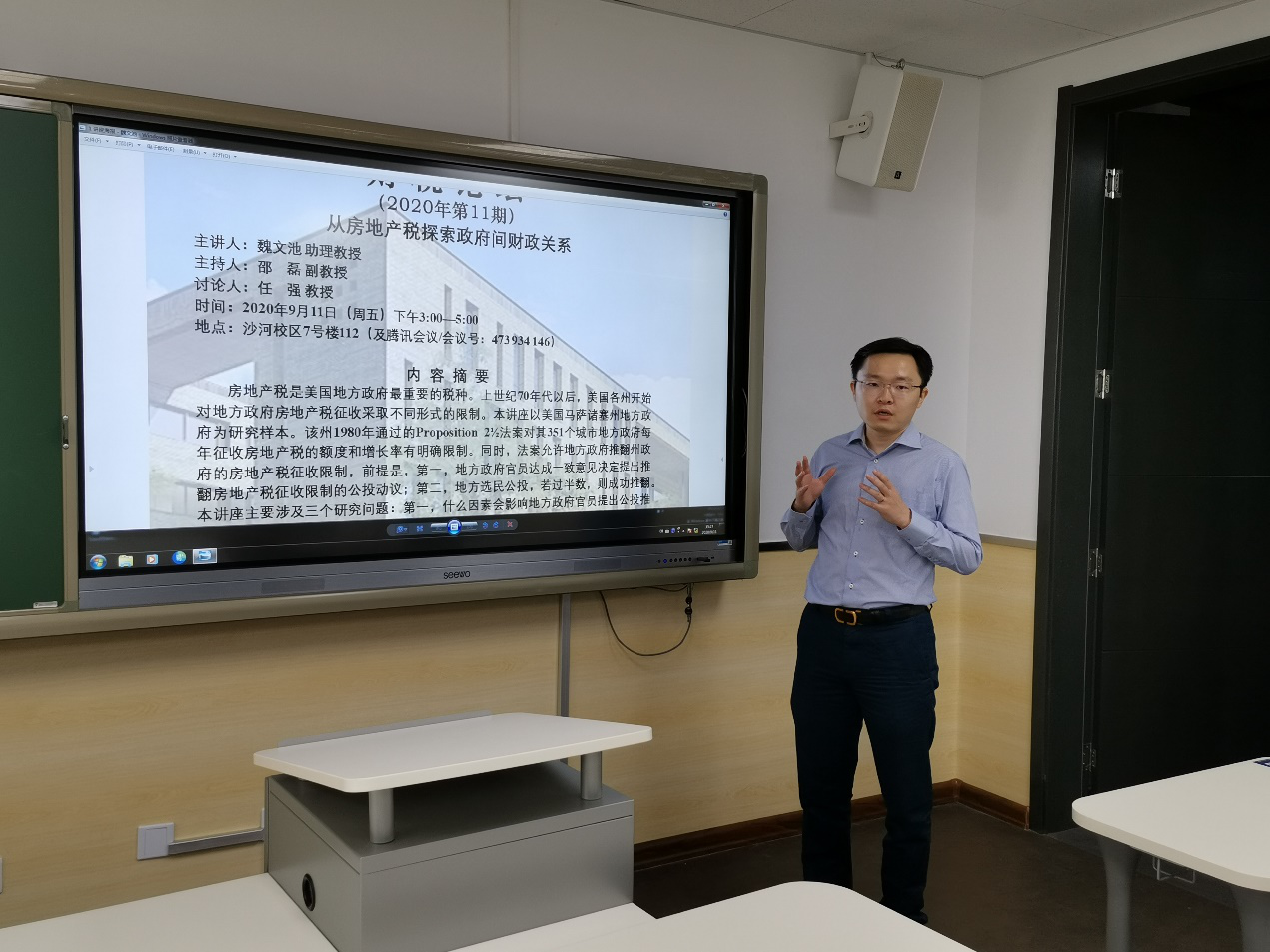 2020年9月11日下午,太阳成集团tyc33455cc官网召开“从房地产税探索政府间财政关系”学术论坛(中财财税论坛2020年第11期),邀请中国人民大学公共管理学院助理教授魏文池老师报告关于美国基层政府结构以及马萨诸塞州房地产税限制的研究。本次讲座采取“线上”和“线下”相结合的形式,来自全国高校和科研院所的财税领域专家学者和财税学院部分师生参加了本次活动。