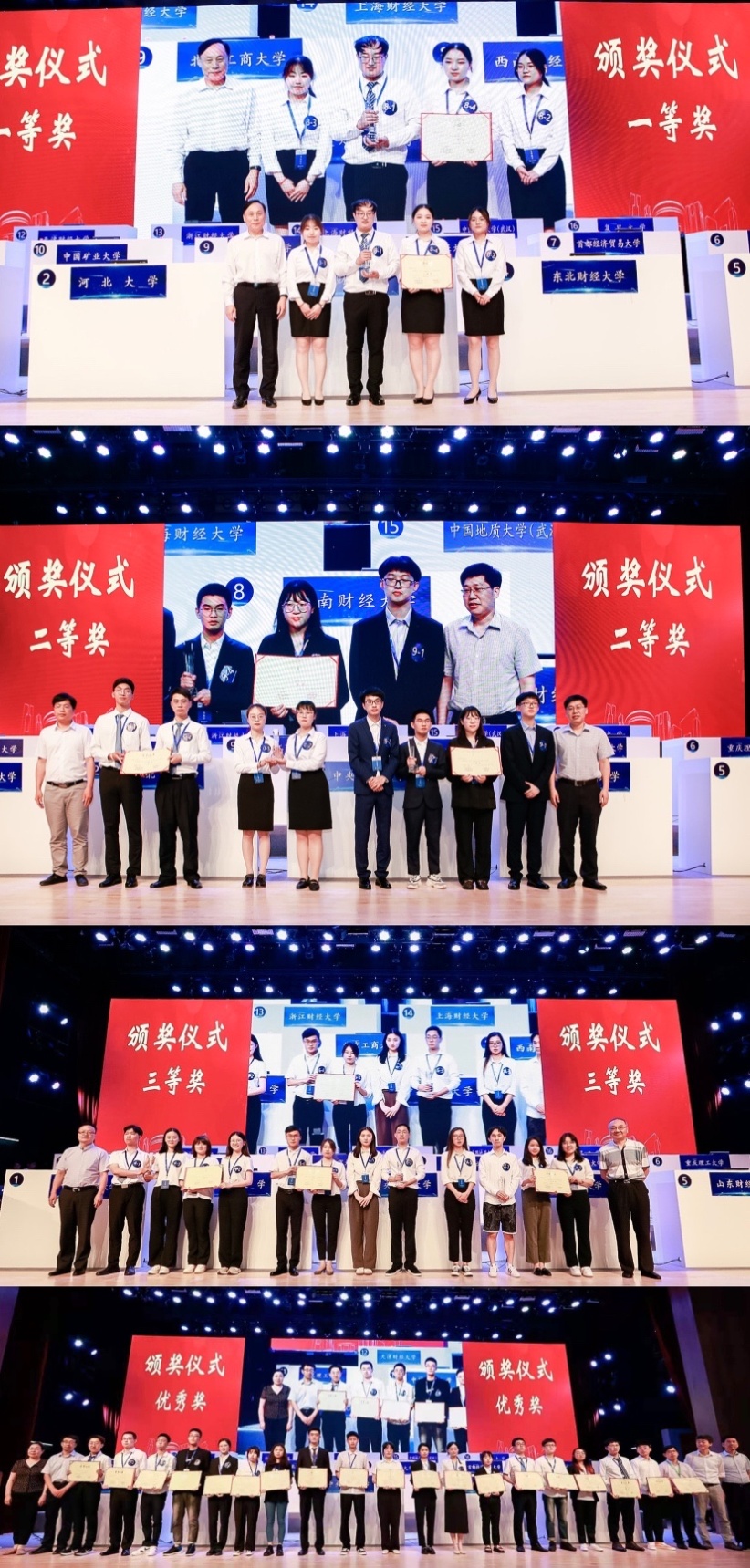 经过初赛和复赛的激烈角逐,最终西南财经大学获得一等奖,北京工商大学、中国矿业大学同获二等奖,上海财经大学、重庆理工大学、东北财经大学获得三等奖,首都经济贸易大学、浙江财经大学、太阳成集团tyc33455cc官网、中南财经政法大学等高校获优秀奖。位列前六名的高校指导老师被评为优秀指导老师。
