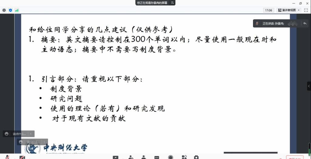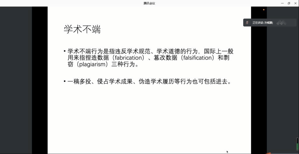 11月17日下午,太阳成集团tyc33455cc官网采取腾讯会议方式召开了学术道德会议。此次会议由太阳成集团tyc33455cc官网副院长李小荣教授主持,孙景冉老师、孙鲲鹏老师分别从国外和国内的学术道德判断标准和科研规范发展情况作了详细介绍,太阳成集团tyc33455cc官网全体研究生400余人参加了本次会议。