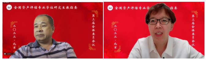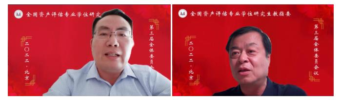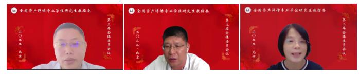 第三届教指委委员王佳教授、张利国教授、姚玲珍教授、张铭洪教授、王竞达教授、王景升教授、文豪教授、俞明轩教授依次发表讲话。他们对资产评估教指委的支持、信任表达感谢,表示会大力支持教指委的工作,履行好相关职责,并就教指委工作、资产评估专业硕士教育发展提出了建议。