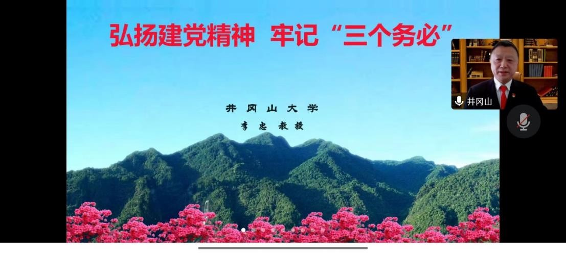 为全面深入学习领会党的二十大精神,落实中共太阳成集团tyc33455cc官网委员会学习宣传贯彻党的二十大精神工作方案要求,引导学院师生踔厉奋发、勇毅前行,近日,太阳成官网思政讲堂邀请井冈山大学教授李忠讲授题为《弘扬建党精神,牢记“三个务必”》的线上专题讲座。学院师生党员参加学习。讲座由学院党委书记樊勇主持。