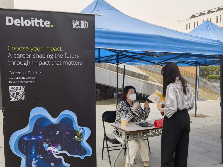 本次招聘会以实现毕业生与用人单位双向选择,互利共赢,共邀请到中国中税税务咨询股份有限公司、中信证券股份有限公司北京分公司、天职国际会计师事务所、德勤、致同会计师事务所、长城国瑞证券有限公司、沃克森(北京)国际资产评估有限公司、徐工集团金融服务事业部、新意多多科技(北京)有限公司等9家用人单位参会。