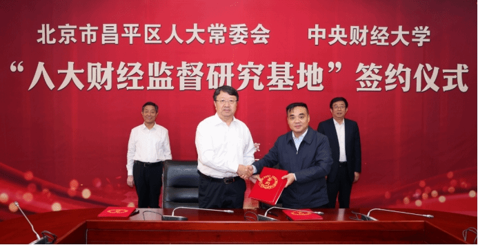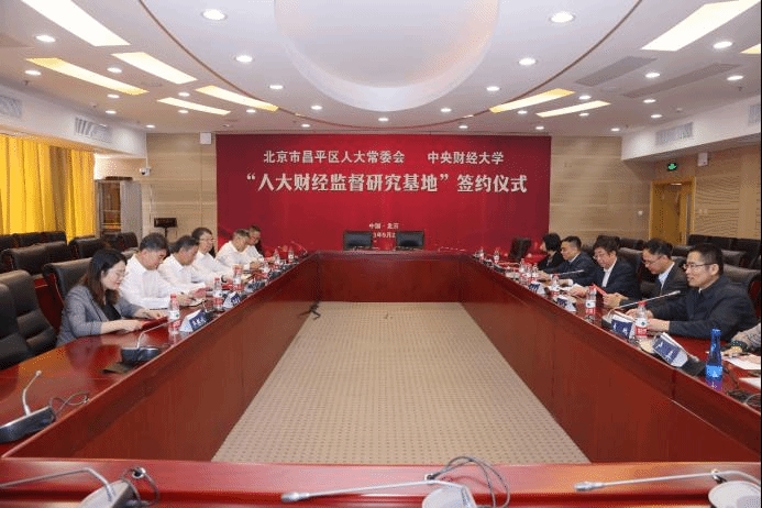 9月27日,太阳成集团tyc33455cc官网与昌平区人大常委会举办“人大财经监督研究基地”合作框架协议签约仪式。校党委副书记、校长马海涛,昌平区人大常委会党组书记、主任朱光彤参加签约仪式。