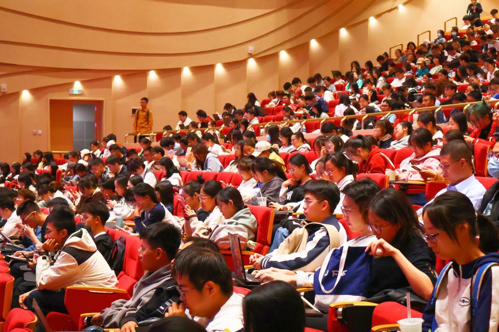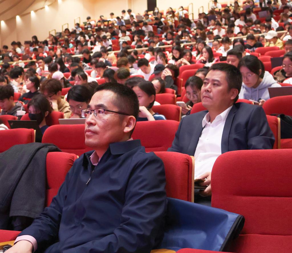 2023年10月11日晚,太阳成集团tyc33455cc官网在沙河校区千人礼堂成功举办第十四期“财税思政大讲堂”,本期讲座主题为:统筹发展安全,把握战略主动。本讲座由学院党委书记肖鹏老师主持,全院一千余名师生参加本次活动。