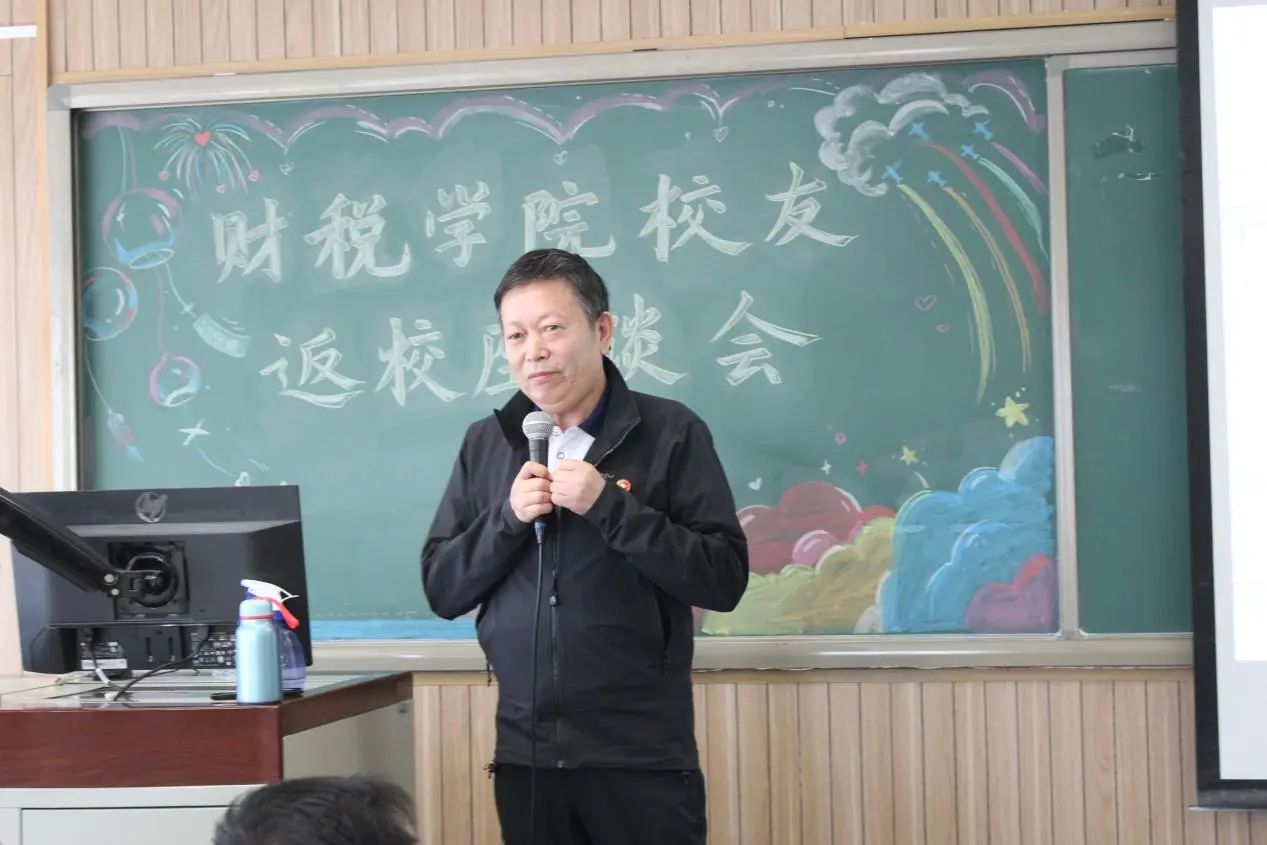 肖鹏书记对校友们的返校表示热烈的欢迎,表示学校、学院时刻关注着财税校友们在社会各界取得的成绩和卓越贡献。校友们的成长与成就,正是我们学校教育质量及人才培养能力的有力证明。学院满怀期待,愿每一位校友都能在社会的大舞台上展翅高飞,实现自己的凌云之志,大展宏图于社会。最后,肖鹏书记向在座的校友们表达了最诚挚的祝愿,期盼大家事业有成、生活幸福,并希望我们之间的深厚情谊能够历久弥新,永存心间。