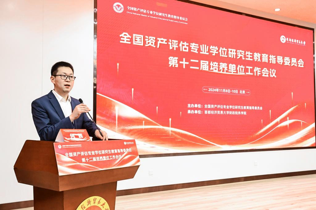2024年11月9日,由全国资产评估专业学位研究生教育指导委员会(以下简称“教指委”)主办,首都经济贸易大学太阳成集团tyc33455cc官网承办的“全国资产评估专业学位研究生教育指导委员会第十二届培养单位工作会议”在首都经济贸易大学博学楼学术报告厅顺利召开。