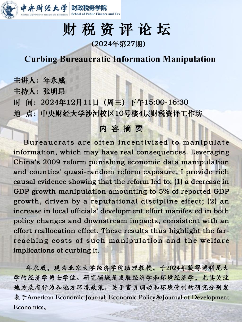 【财税资评论坛】Curbing Bureaucratic lnformation Manipulation