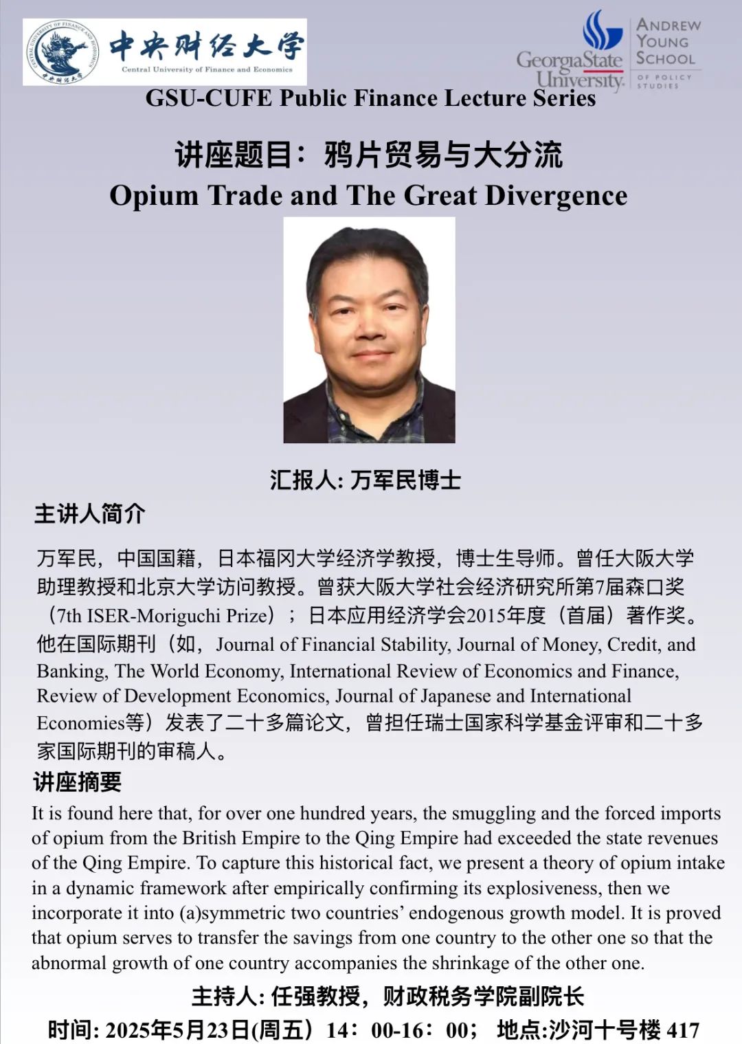 【“中财-乔治亚州立”公共财政国际学术前沿系列讲座】鸦片贸易与大分流