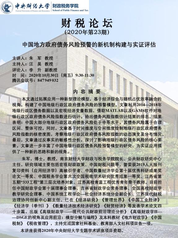 下一篇:财税学院召开“走向权利平等之路——来自‘定点学校’政策的准实验证据”财税论坛