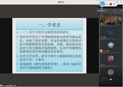 本次财税论坛采用线上会议形式,由财税学院马金华教授主持。财税学院副院长刘金科老师致辞,表达了对顾銮斋教授和各位参会老师同学的热烈欢迎,提出探讨中西中古赋税结构及其发展趋势有助于我们理解中外税收理念的差异和深层次原因,对我国税制改革具有重要启示意义,并希望依托财税论坛这一平台深化相关领域的学术交流与合作。