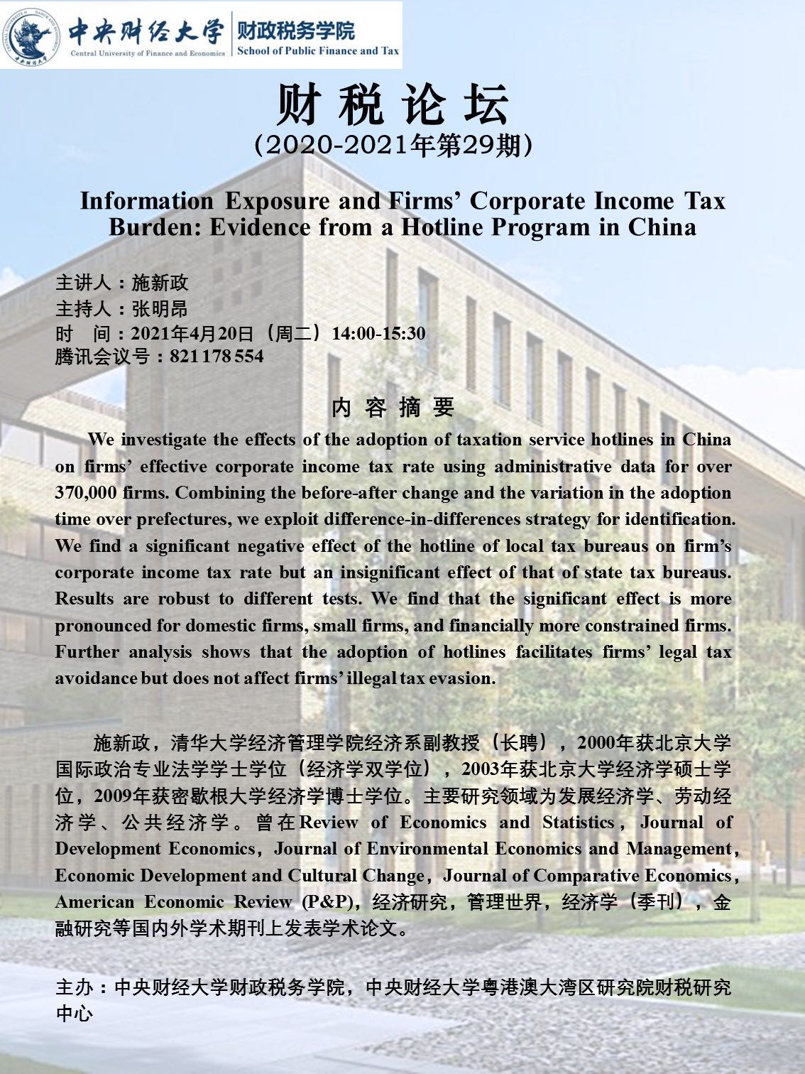 上一篇:财税学院召开“ 纳税信息获取与企业所得税实际税负 ”财税论坛