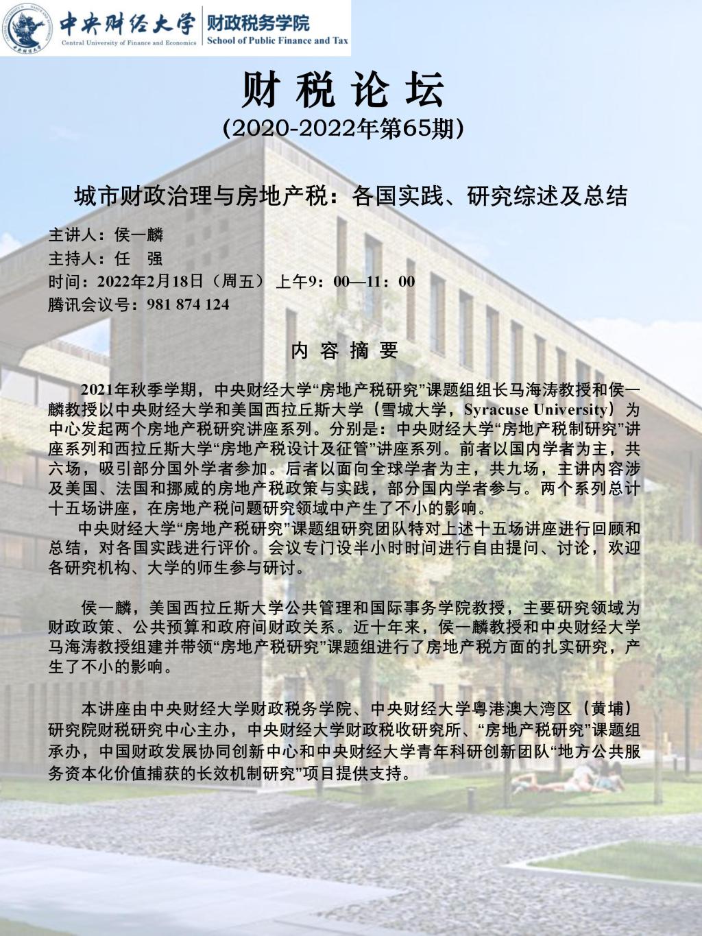 太阳成集团tyc33455cc官网“房地产税研究”课题组依托太阳成集团tyc33455cc官网财政税收研究所开展活动。更多课题组相关观点、文章及活动,请长按扫描二维码关注中财财税所太阳成集团tyc33455cc官网财政税收研究所微信公众号。