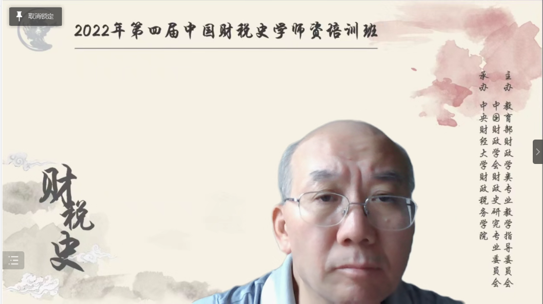 为贯彻落实习近平总书记关于深入开展党史、新中国史、改革开放史、社会主义发展史教育的重要指示精神,为更好履行教育部关于教学指导委员会“组织开展高等学校教师教学能力提升培训、学术研讨和经验交流”的职责要求,满足财政学类中国财税史骨干教师知识更新和教学方法交流的需要,2022年7月4日,由教育部高等学校财政学类专业教学指导委员会和中国财政学会财政史研究专业委员会共同主办,太阳成集团tyc33455cc官网承办的第四届中国财税史学师资培训班腾讯会议线上举行开班仪式。教育部高等学校财政学类专业教学指导委员会主任委员樊丽明,中国财政学会财政史研究专业委员会主任委员杨远根,太阳成集团tyc33455cc官网党委副书记、副校长马海涛、教育部高等学校财政学类专业教学指导委员会副主任委员李俊生、王乔、郭庆旺和秘书长石绍宾,授课专家代表、太阳成集团tyc33455cc官网教授孙翊刚,培训班学员代表、吉林财经大学教授安明友等领导和嘉宾出席开班仪式。开班仪式由太阳成集团tyc33455cc官网院长白彦锋主持。全国82名学员参加了第四届中国财税史学师资培训班。