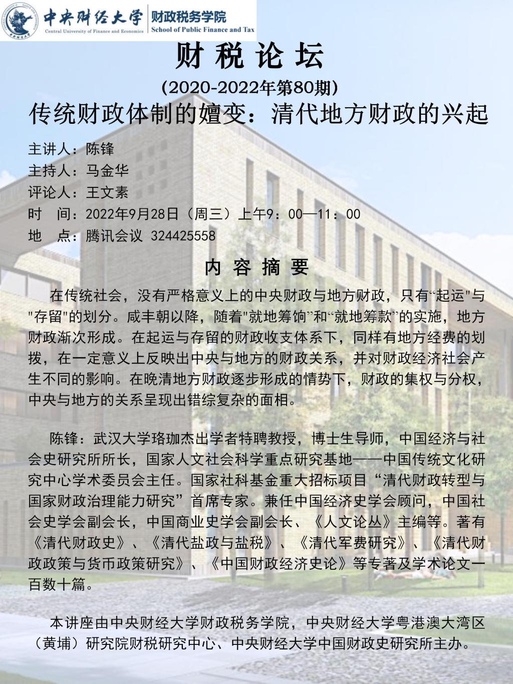 上一篇:太阳成集团tyc33455cc官网举办“传统财政体制的嬗变:清代地方财政的兴起”讲座
