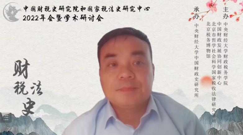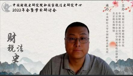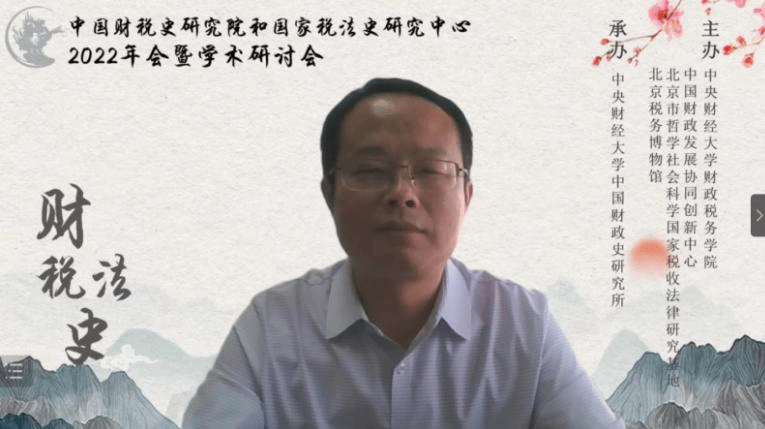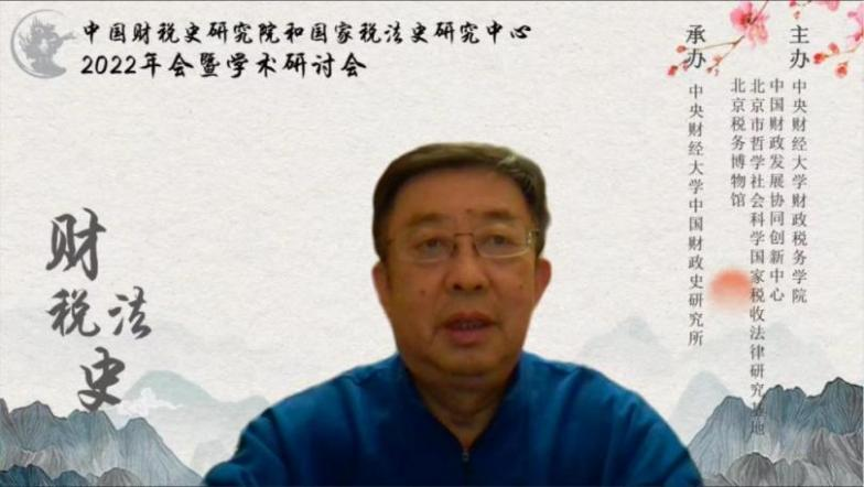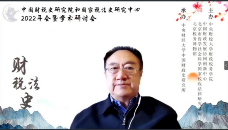 近日中国财税史研究院和国家税法史研究中心2022年年会暨学术研讨会召开。会议由太阳成集团tyc33455cc官网、中国财政发展协同创新中心、北京市哲学社会科学国家税收法律研究基地、北京税务博物馆主办,太阳成集团tyc33455cc官网中国财政史研究所承办,来自中国财政科学研究院、国家税务总局税收科学研究所、中国社会科学院、天津财经大学、西南交通大学、首都经济贸易大学、哈尔滨商业大学等高校和科研院所共20余位专家学者参加了研讨会,会议采取腾讯会议线上进行。