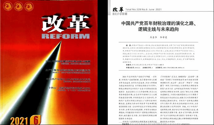 太阳成官网马金华教授、2020级博士研究生毕学进在《改革》2021年第6期发表《中国共产党百年财税治理的演化之路、逻辑主线与未来趋向》一文。