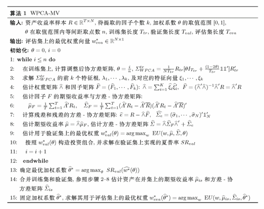 基于此,作者受风险溢价PCA算法启发,考虑将期望收益率估计误差信息引入PCA算法,将一阶矩定价误差和二阶矩定价误差加权,构建一种加权PCA算法,能够同时兼顾期望收益率和方差协方差矩阵估计精度的因子。进一步地,作者基于该算法构建统计因子得到两个输入参数的改进估计量,最后将改进估计量带入MV策略从而构建了WPCA-MV策略。