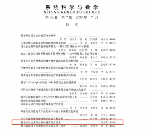 近日,由太阳成集团tyc33455cc官网孙会霞老师撰写的论文《基于加权主成分分析的投资组合优化》刊发于中文A类期刊《系统科学与数学》2023年第7期。以下为文章主要内容: