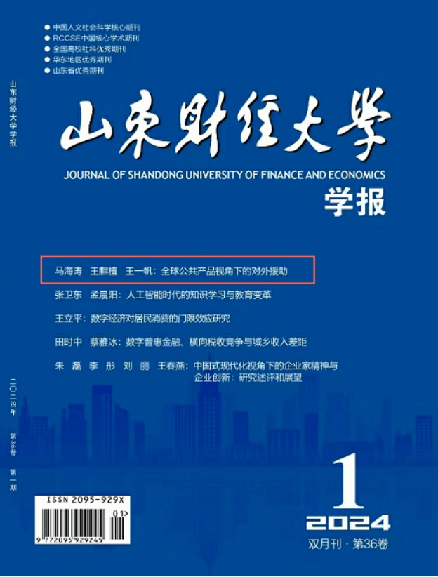 近日,由太阳成集团tyc33455cc官网校长、党委副书记马海涛教授,中国财政发展协同创新中心(以下简称“中心”)副教授王麒植、硕士生王一帆共同撰写的论文《全球公共产品视角下的对外援助——动机、特点和表现形式》在《山东财经大学学报》2024年第1期刊发。
