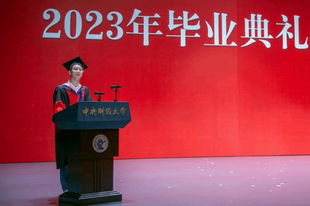 今天对于很多人而言,都将意味着学生时代的结束,生活即将翻开崭新的篇章。我们或许会有对未来生活的迷茫,会有对现实压力的焦虑。无需担心,让我们以中财大“红蓝黄”精神为指引,秉持“忠诚、团结、求实、创新”的校训,以财经报国作为我们的使命担当,用青春谱写最华丽的篇章!