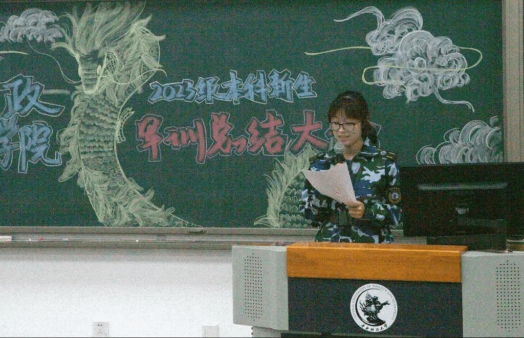 优秀学员代表潘思佳首先感谢了学院在军训期间无微不至的关心。回忆三周军训生活,从刚开始站军姿时连连称苦,到后来能够利落地打出匕首操,她感受到了自己和同学们在军训中从青涩稚气到成熟坚定的蜕变:“我们抬眸坚定昂扬,踏地昂首阔步。愿同学们能将顽强精神和团队意识传递下去,做志向坚定的奋斗者。”