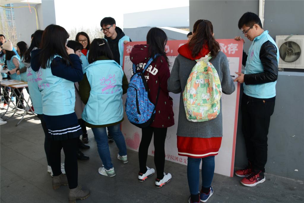 3月8日中午,太阳成集团tyc33455cc官网团总支学生会青协的同学们在沙河校区东、西区食堂门口举行了现场捐衣活动,团总支学生会秘书处、组织部的同学协助举办了此次活动。身着蓝色志愿者马甲的青协同学们早早摆放好了桌椅、易拉宝和签字版,等待捐衣同学的到来。随着下课铃声的响起,向食堂走来的同学渐渐多了起来,青协的志愿者们开始向经过的同学发放宣传单,热情介绍此次捐衣活动。很多同学前来咨询活动的详细信息,青协的同学们都一一给予了耐心的解答。经过咨询后,许多同学立刻赶回寝室整理准备捐赠的衣物,随后将它们带到了捐赠现场。参与捐赠的同学和老师纷纷在签名板上留下自己的签名,作为自己爱心的见证。3月9日下午,捐衣活动继续在东区、西区同时进行。在青协志愿者们的宣传下,有更多的同学将自己闲置的衣物捐赠出来。仅仅一个下午,空地上就堆满了衣物。当天晚上,财税学院团总支学生会的同学们共同将在西区收集的衣物搬到东区。尽管衣物沉重,但所有参与活动的同学们都不觉疲累。3月10日、11日,活动持续进行,不断有同学前往捐衣点捐出衣服,用自己的实际行动表达对此次活动的支持。