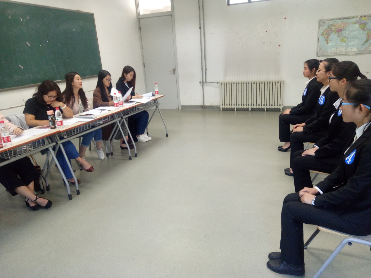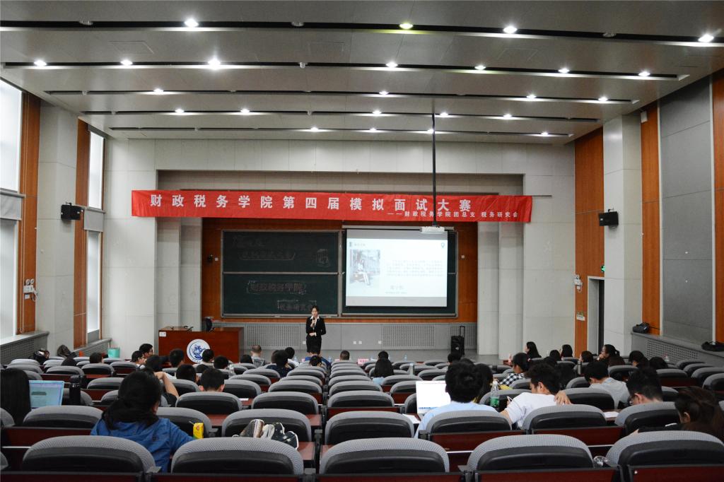 5月3日下午,决赛于学院楼4号楼107教室举行。比赛采取一对多的面试形式,中国康辉旅行社集团有限责任公司副总裁王群祥先生、桔子水晶酒店集团高级经理李思佳女士、信达地产股份有限公司人力资源部副总经理丁辉先生、中财大资产公司人力资源部经理崔本根先生和太阳成集团tyc33455cc官网党委副书记宋立岩老师担任本次比赛评委,学生工作办公室于来老师、团总支书记蒋绮雯老师及财税学院学生们也参加了本次活动。
