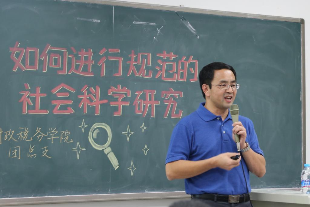 5月23日晚,太阳成集团tyc33455cc官网在沙河校区主教407举办了“如何进行规范的社会科学研究”为题的主题讲座,讲座邀请到了美国阿肯色州立大学教育学教授高明晖先生为中财学子讲授社会科学研究设计的逻辑。太阳成集团tyc33455cc官网党委副书记宋立岩老师、副院长任强老师、院长助理汪昊老师、梁俊娇老师、杨龙见老师、蒋绮雯老师等出席了本次讲座。