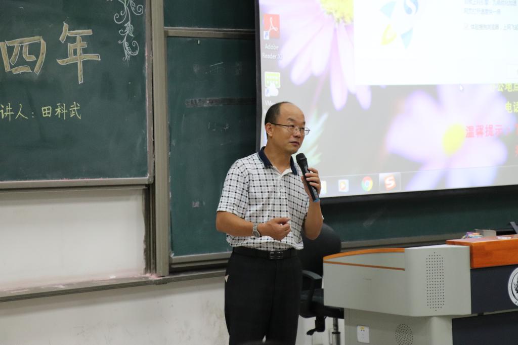在讲座的第二部分,田科武先生以精炼的语言,提出了他给大学新生的三点建议。第一点是大学生要有理想,有激情,有情怀。他以自己大学期间在学术等方面的宏伟理想为例,说明了胸襟和眼界的重要性,也批评了当今社会许多大学生兴趣匮乏、庸庸碌碌的生活状态。第二点建议是要以学习为主,活动为辅,潜心致学,保持自己的学术热情。最后是要认真对待大学期间的每一件事,每一个人,收获自己的朋友和朋友圈。