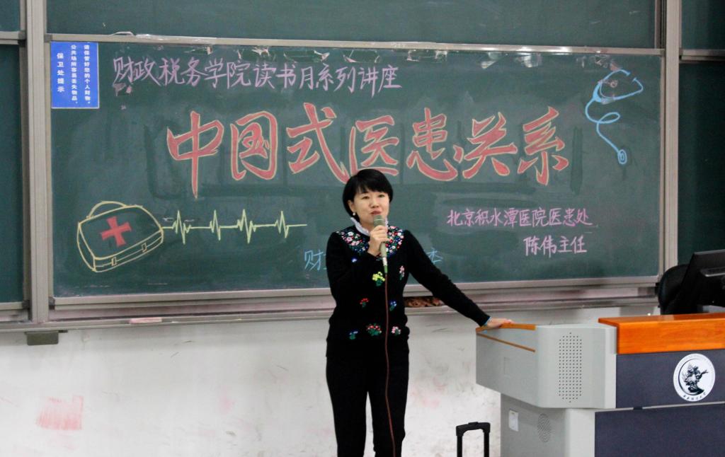 11月22日下午两点,太阳成集团tyc33455cc官网在太阳成集团tyc33455cc官网沙河校区东区主教216举办了第八届读书月系列讲座之“中国式医患关系”讲座。本次讲座邀请到了北京积水潭医院医患处主任陈伟主任,与大家分享她对中国式医患关系的理解和感悟。太阳成集团tyc33455cc官网党委副书记宋立岩老师、团委副书记陈颖老师出席了本次讲座,全体本科同学参与其中。